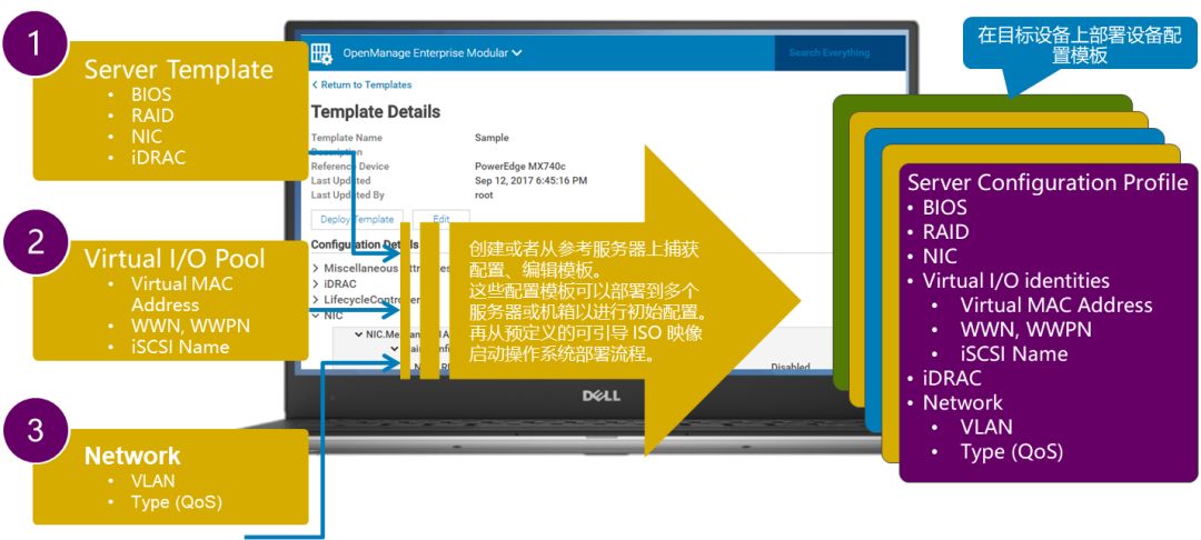 l 基于模板的配置:捕獲、定義、編輯和部署/復制服務器/機箱硬件配置設置服務器運維技術,一旦設置,快速復制到多臺服務器。